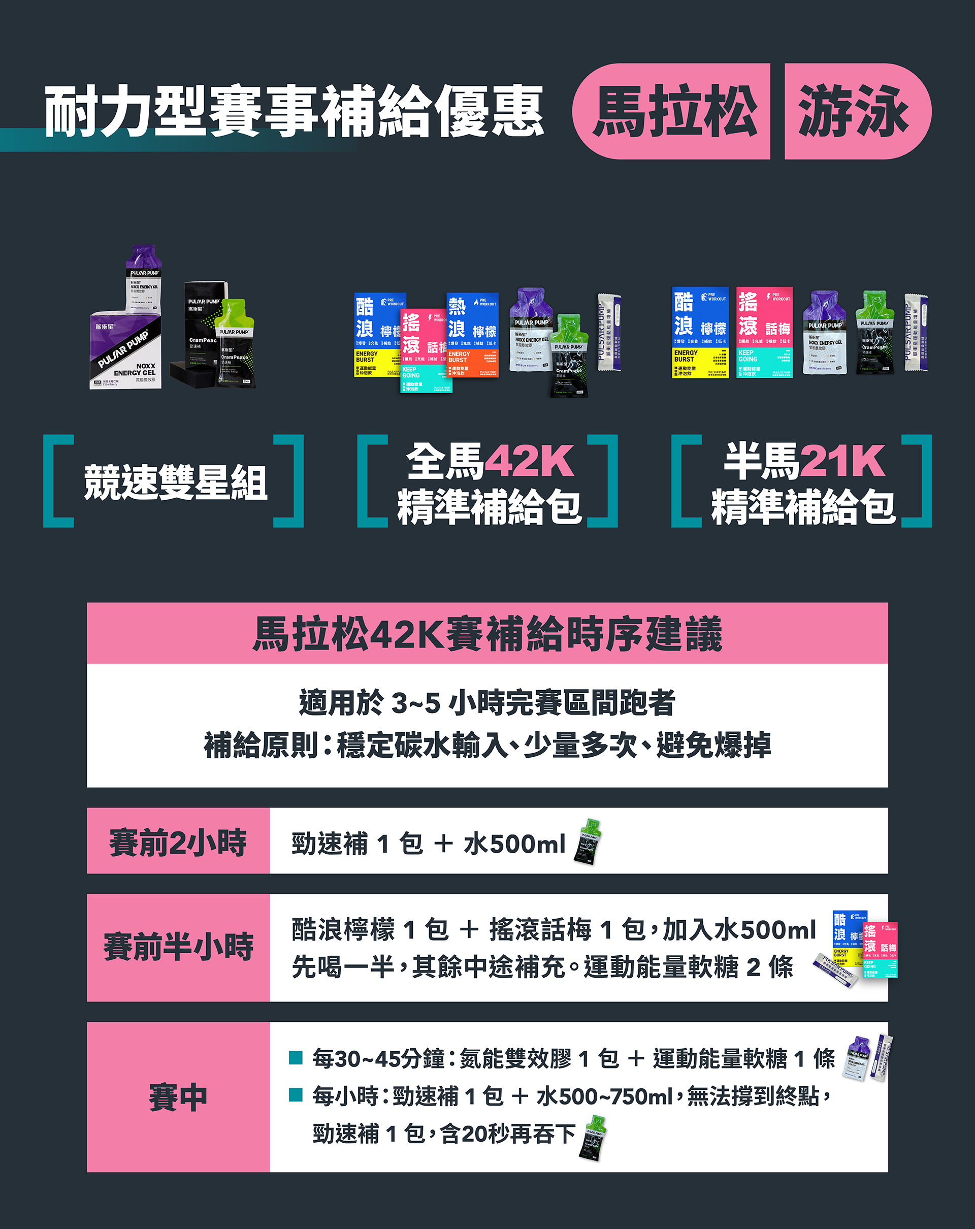 特價 全馬42K組/軟糖口味隨機 NT$1,246 原始價格:NT$1,246。NT$1,184目前價格:NT$1,184。 加入購物車 特價 競速雙星組合 (勁速補1盒+氮能雙效膠1盒) NT$1,538 原始價格:NT$1,538。NT$1,449目前價格:NT$1,449。 加入購物車 特價 超級鐵人226補給包/軟糖口味隨機 NT$2,399 原始價格:NT$2,399。NT$2,200目前價格:NT$2,200。 加入購物車 特價 鐵人三項515 NT$711 原始價格:NT$711。NT$675目前價格:NT$675。 加入購物車 特價 自行車百K精準補給包/軟糖口味隨機 NT$1,101 原始價格:NT$1,101。NT$1,046目前價格:NT$1,046。 加入購物車 特價 半馬21K精準補給包/軟糖口味隨機 NT$699 原始價格:NT$699。NT$565目前價格:NT$565。 加入購物車