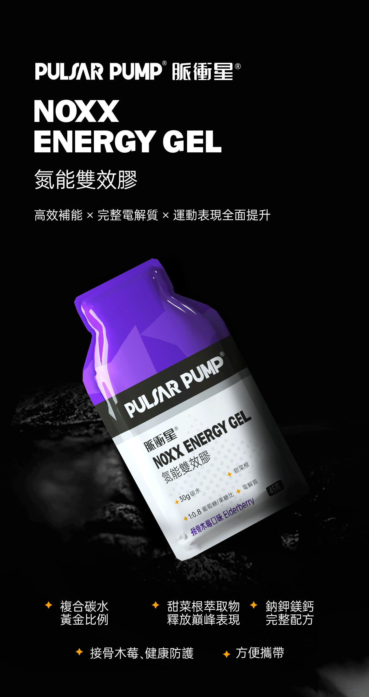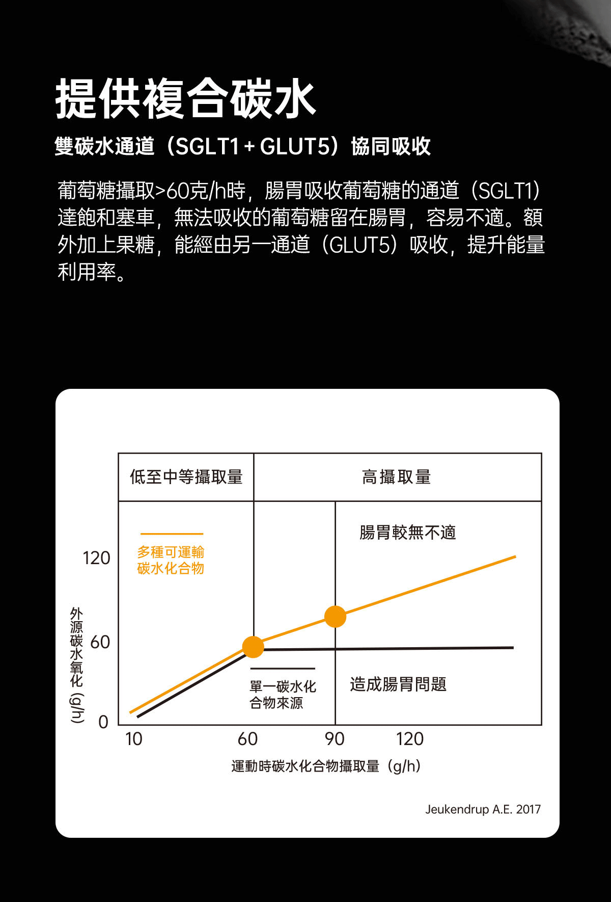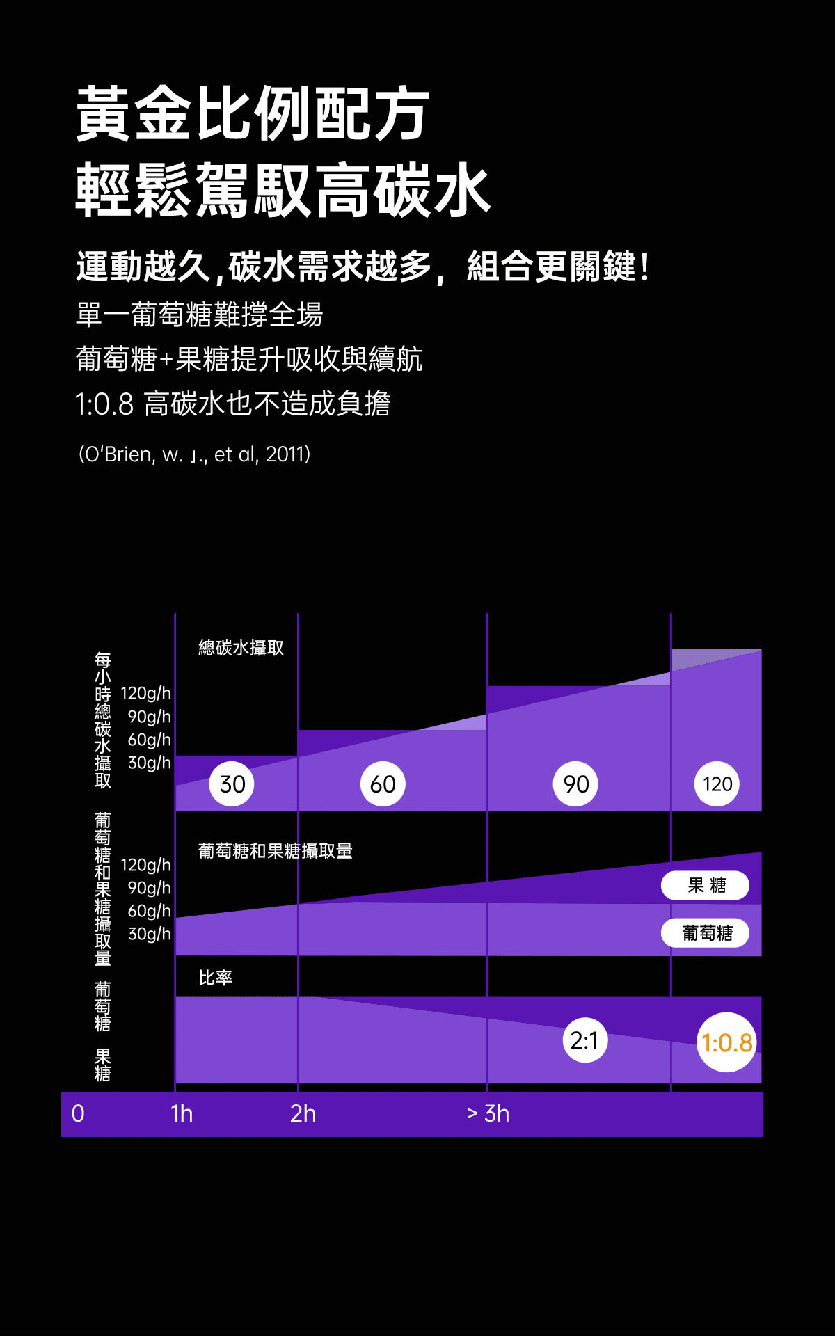 黃金碳水比例(葡萄糖 : 果糖 = 1 : 0.8),快速吸收補充運動能量。
